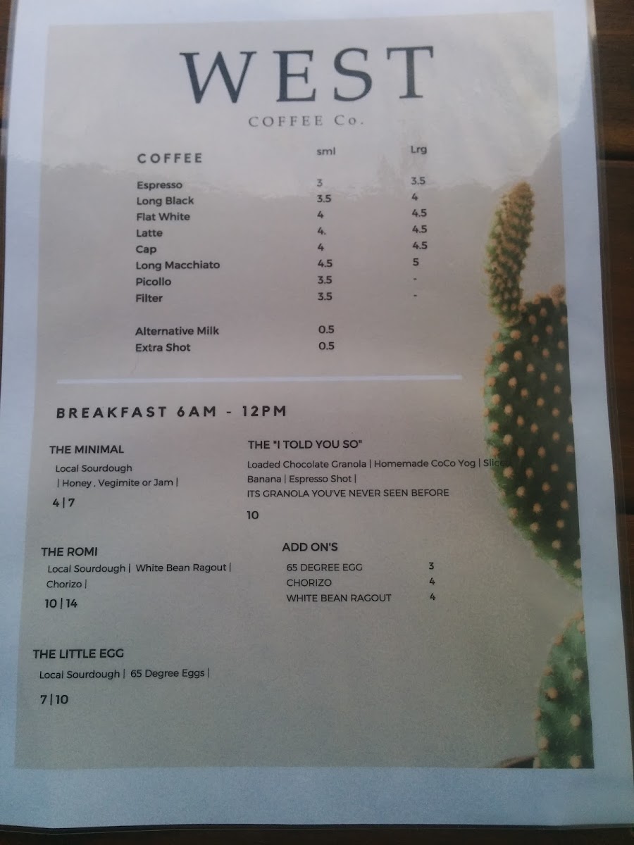 Introducing the Menu at WEST Coffee Co. ESPRESSO BAR
